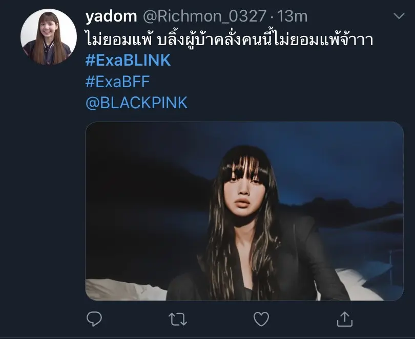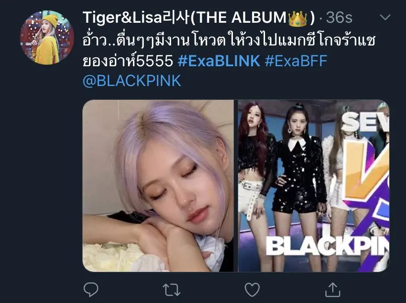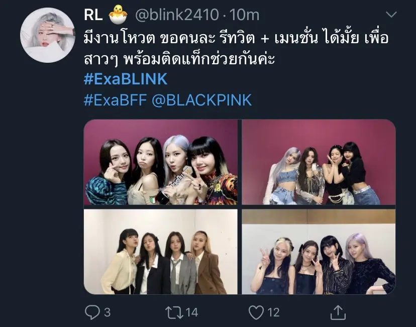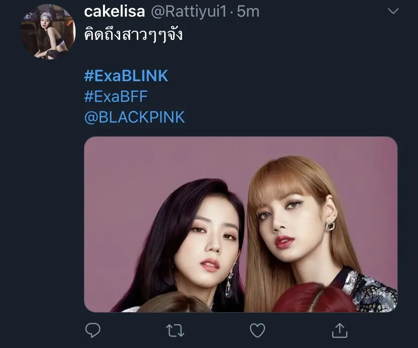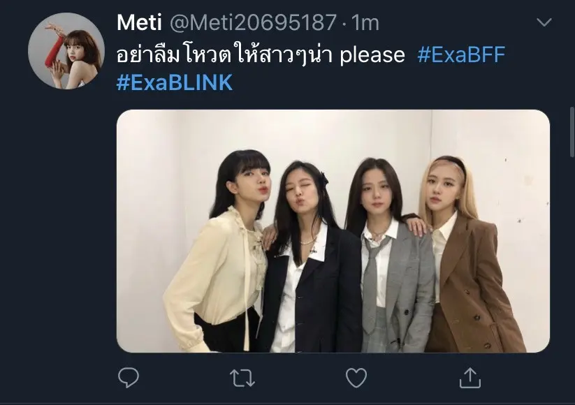 - ทวิตพร้อมติดแฮชแท็ก #ExaBLINK #ExaBff @BLACKPINK + อีโมจิ