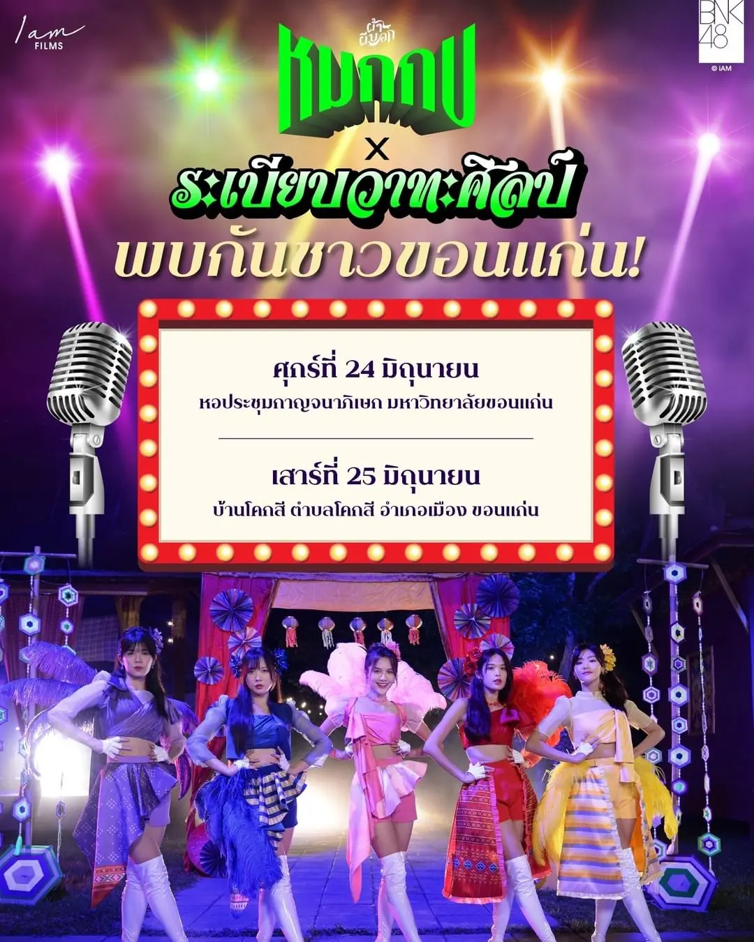 เรียกได้ว่าจัดหนักจัดเต็มไม่ทำให้แฟน ๆ ต้องผิดหวังกันเลยทีเดียว สำหรับ 5 สาวจาก BNK48 หมกกบ ที่ได้ร่วมการแสดงกับวงหมอลำในตำนานอย่าง ระเบียบวาทะศิลป์ ซึ่งถือเป็นครั้งแรกของวงไอดอลที่ได้ปรากฏตัวแบบม่วน ๆ บนเวทีหมอลำ ที่หอประชุมกาญจนาภิเษก มหาวิทยาลัยขอนแก่น