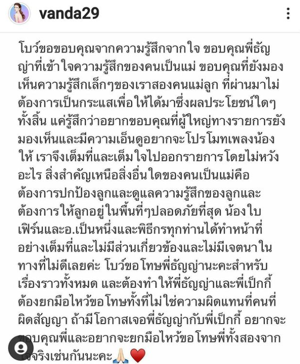 สยบดราม่า ! โบว์ แวนด้า โพสต์ขอบคุณ ธัญญ่า ยัน พิธีกรไม่มีส่วนเกี่ยวข้องใด ๆ