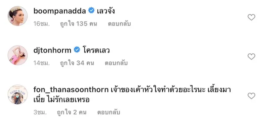 ทั้งนี้ทางด้าน บุ๋ม ปนัดดา ดีเจต้นหอม และฝน ธนสุนทร ต่างเข้ามาคอมเมนต์กับคลิปดังกล่าวว่า