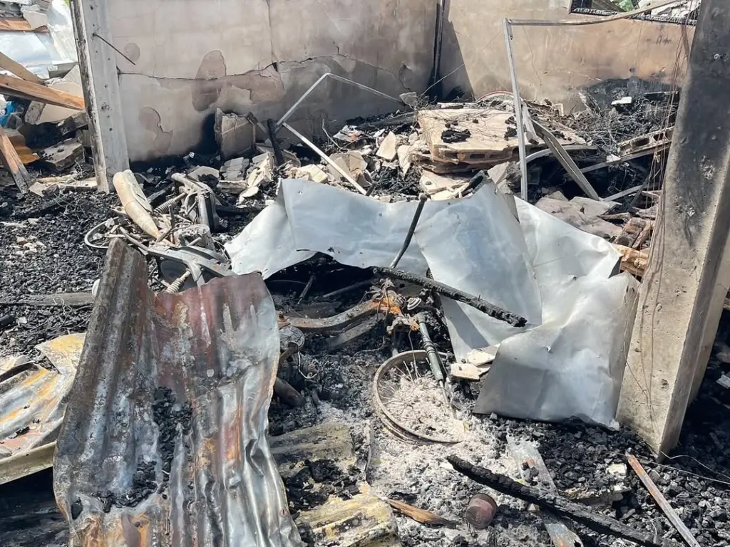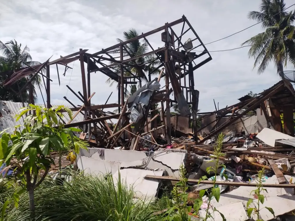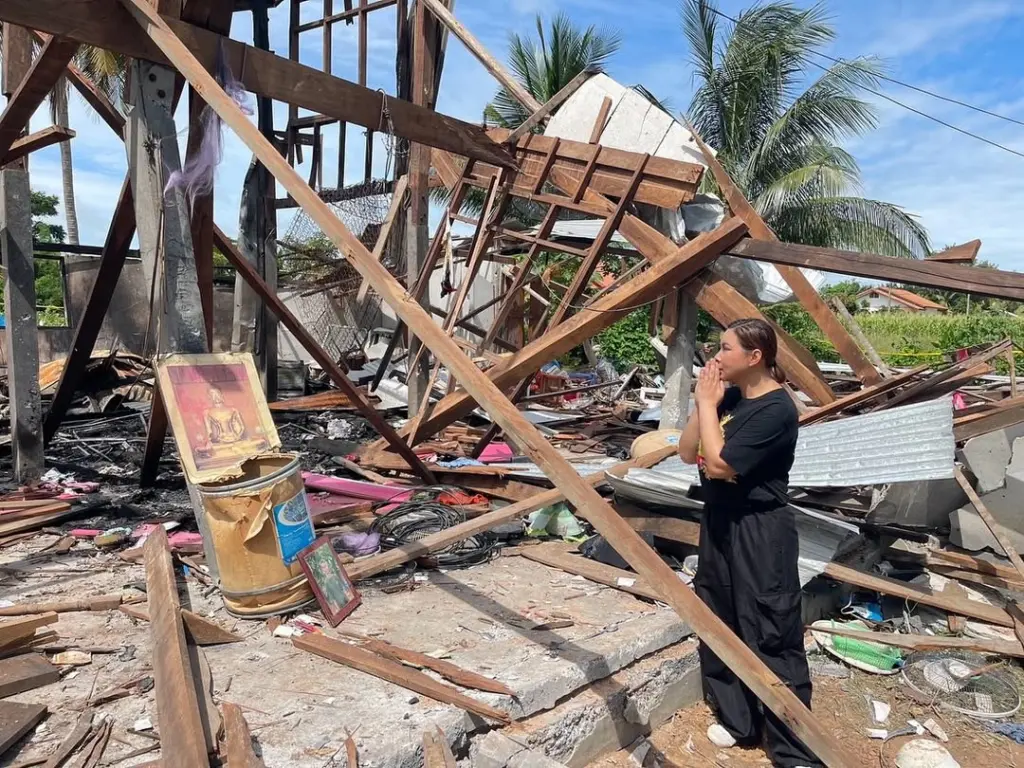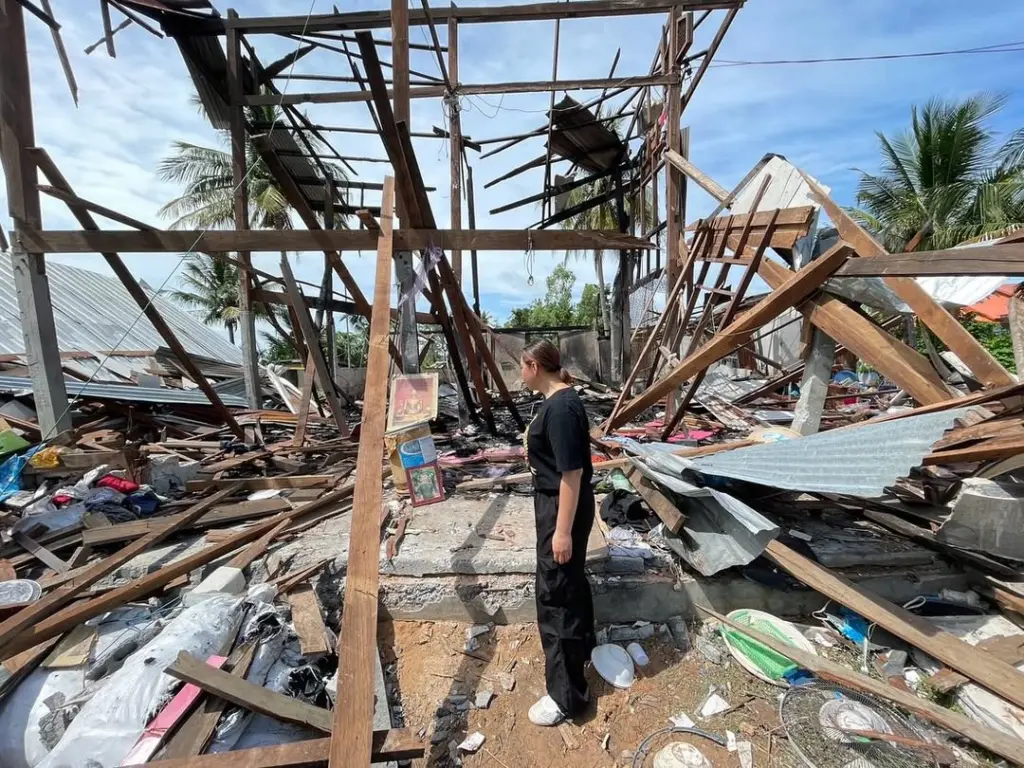 “บ้านหลังนี้โดนทำลายทั้งหลังจากระเบิด ไม่เหลืออะไรเลย ยกเว้นรูปภาพสามภาพ สมาชิกในบ้าน 7-8 คน โชคดีไม่เป็นอะไร” – บุ๋ม ระบุ