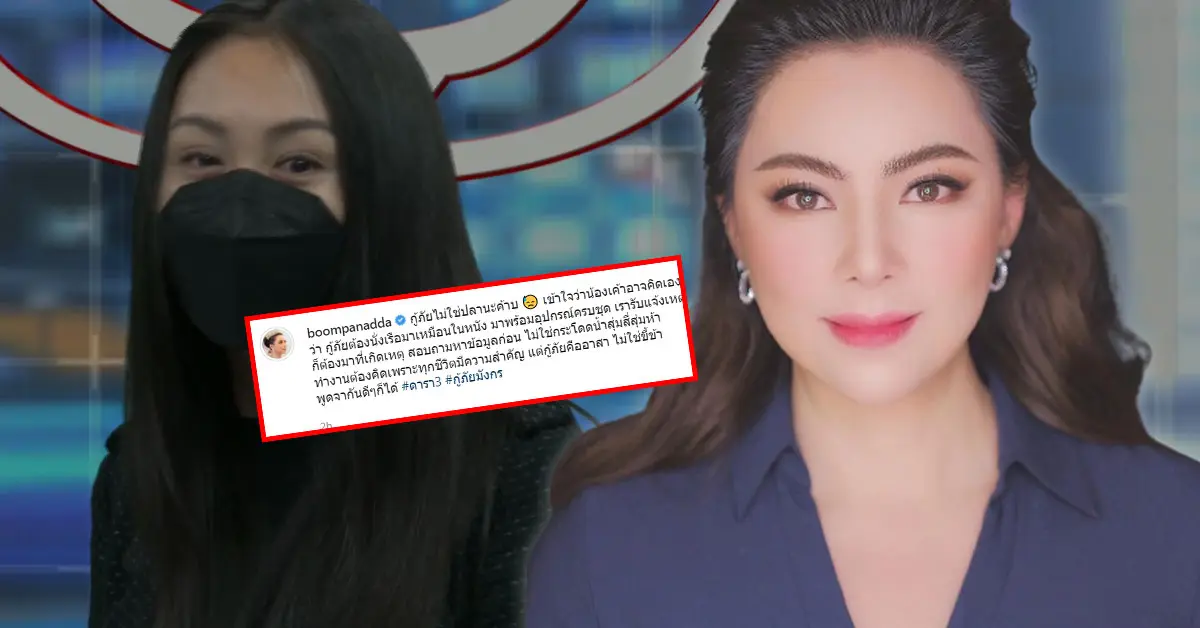 งานนี้ บุ๋ม ถึงกับออกมาพูดกับประเด็นดังกล่าวผ่านแคปชั่นในไอจีของเธอว่า กู้ภัยไม่ใช่ปลานะค้าบ เข้าใจว่าน้องเค้าอาจคิดเองว่า กู้ภัยต้องนั่งเรือมาเหมือนในหนัง มาพร้อมอุปกรณ์ครบชุด เรารับแจ้งเหตุก็ต้องมาที่เกิดเหตุ สอบถามหาข้อมูลก่อน ไม่ใช่กระโดดน้ำสุ่มสี่สุ่มห้า ทำงานต้องคิดเพราะทุกชีวิตมีความสำคัญ แต่กู้ภัยคืออาสา ไม่ใช่ขี้ข้า พูดจากันดีๆก็ได้ #ดารา3#กู้ภัยมังกร