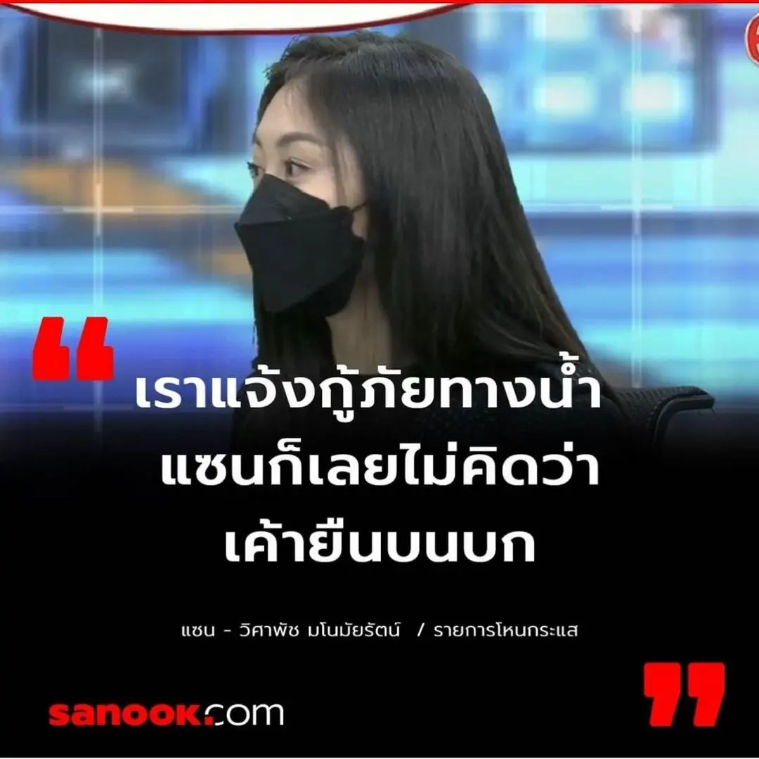 ล่าสุดคนบันเทิงอย่าง บุ๋ม ปนัดดา ก็ได้ออกมาเคลื่อนไหวถึงประเด็นดังกล่าวเช่นกัน พร้อมกับออกมาแชร์คำพูดของ แซน หนึ่งใน 4 คน ที่มาออกรายการหลังให้สัมภาษณ์ว่า เราแจ้งกู้ภัยทางน้ำ แซนก็เลยไม่คิดว่า เค้ายืนบนบก