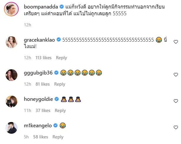 ขณะเดียวกันเหล่าคนบันเทิงต่างพากันแห่เข้ามาคอมเมนต์ชอบใจกันเป็นจำนวนมากพร้อมแซวว่าลูกสาวบุ๋ม ปนัดดากันอย่างเอ็นดู