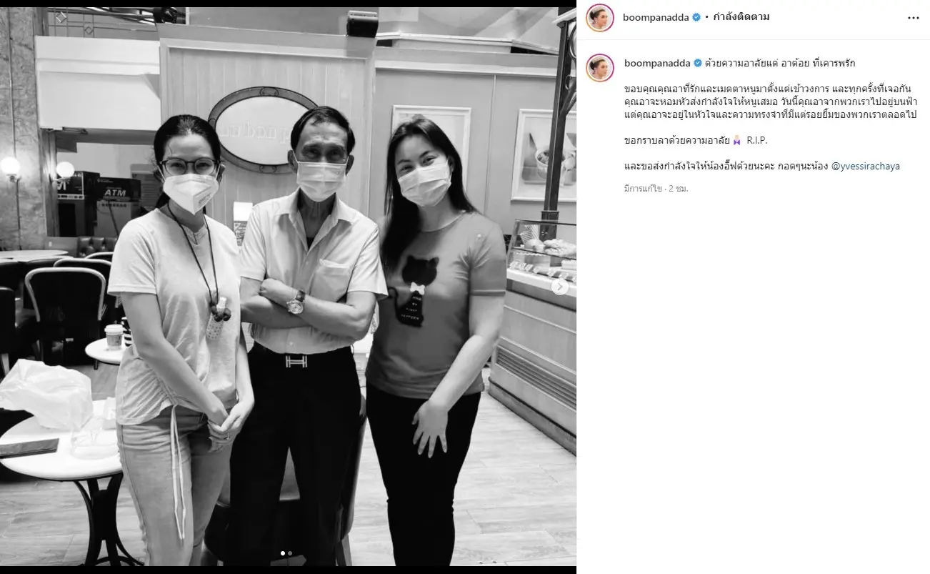 บุ๋ม ปนัดดา ร่วมโพสต์ข้อความไว้อาลัยต่อการจากไปของ อาต้อย เศรษฐา พร้อมเล่าโมเมนต์ความประทับใจในทุก ๆ ครั้งที่ได้เจอกับอาต้อยผ่านทางอินสตาแกรม