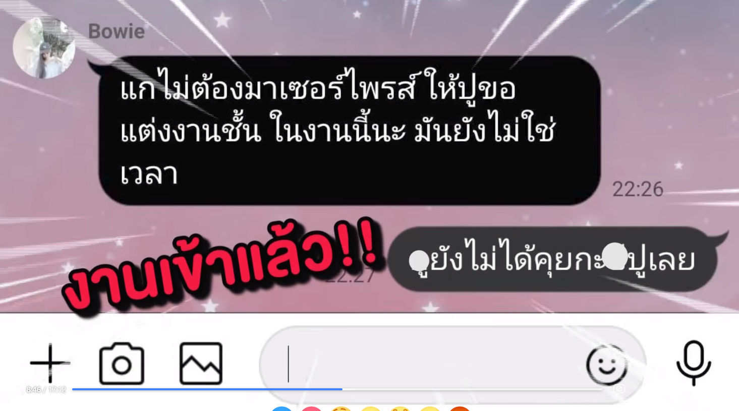 แต่สุดท้ายแผนการทั้งหมดที่ถูกจัดเตรียมไว้ก็ไม่ได้ล่มแต่อย่างใด กระทั่งมาถึงช่วงที่แฟนหนุ่มของ โบวี่ กำลังอวยพรวันเกิดให้เจ้าตัว พิธีกรในงานก็ได้ชงว่าอยากให้แฟนหนุ่มเข้าไปอวยพรแบบใกล้ ๆ ก่อนที่ฝ่ายชายจะเผยความในใจว่า
