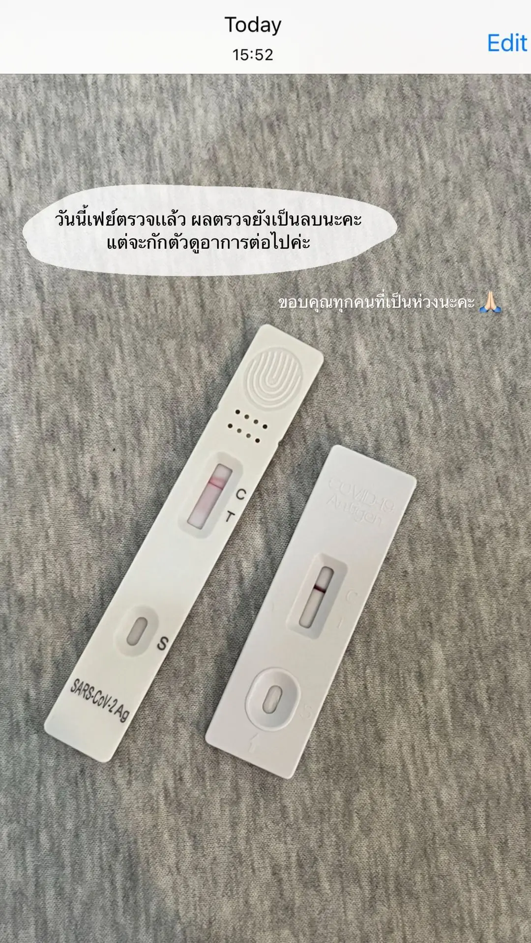 งานนี้ เฟย์ ก็ได้ออกมาเผยข่าวให้แฟนๆได้ทราบกันว่า ผลตรวจของเธอยังเป็นผล และยังคงกักตัวรอดูอาการกันต่อไป ขอบคุณทุกคนที่เป็นห่วง