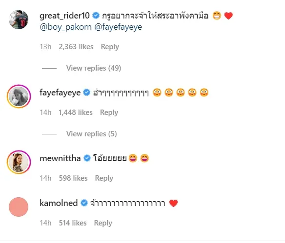 ล่าสุดเมื่อวานนี้ 7 มิ.ย. บอย ปกรณ์ ได้ออกมาบอกเองแบบไม่ต้องถาม พร้อมตั้งแคปชั่นมดขึ้นแบบชวนเขิน แนบมาด้วยรูปดึงแก้มสาว เฟย์ งานนี้ใครจะอดใจแซวไหว