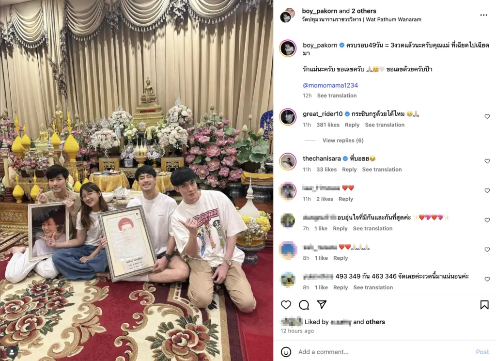 “บอย ปกรณ์” รวมตัวครอบครัวครบ 49 วันแม่จากไป พร้อมแคปชั่นขอเลขเด็ดสุดฮา