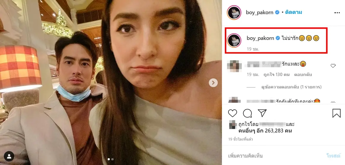 เรียกได้ว่ามีโมเมนต์น่ารักๆออกมาให้เห็นตอนสำหรับ บอย ปกรณ์ นักแสดงหนุ่มสุดเข้มและนักแสดงสาวอย่าง ชิปปี้ ที่หลายคนจิ้นกันหนักมาก จิ้นในฉบับที่เรียกได้ “เหมือนแฟนกันจริงๆ” โดยล่าสุดหนุ่มบอย ได้ลงภาพคู่กับ ชิปปี้ พร้อมแคปชั่นว่า “ไม่น่ารัก” งานนี้เหล่าบรรดาแฟนคลับถึงกับเข้ามาเเซวลั่นเลยว่า “จริงๆเเล้วรักแหละ” ซึ่งบางคนก็เข้ามาเเซวว่า “จิ้นคู่นี้หนักมาก” เรียกได้ว่า เป็นอีกหนึ่งคู่จิ้นที่หลายๆคนอยากจะให้เป็นคู่จริงซะเหลือเกิน เพราะโมเมนต์ความน่ารักของทั้งคู่มันชวนให้ฟินไปตามๆกันจริงๆค่า