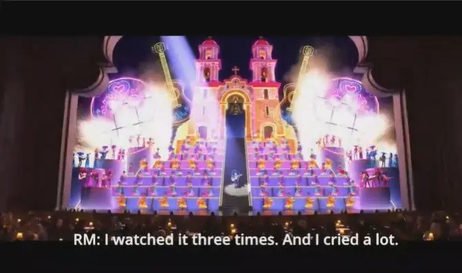 ในวิดีโอ สมาชิก BTS พูดถึงอนิเมชั่นของ Pixar เรื่อง “Coco” โดย RM ลีดเดอร์ของ BTS กล่าวว่า “ผมดู ‘Coco’ ไปสามครั้งและร้องไห้หนักมาก”
