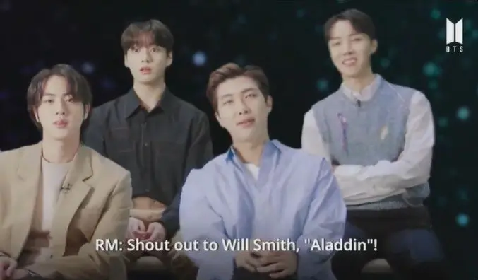นอกจากนี้ RM ยังได้กล่าวถึง Will Smith นักแสดงที่ปรากฏตัวในเรื่อง “Aladdin” และให้กำลังใจเขา