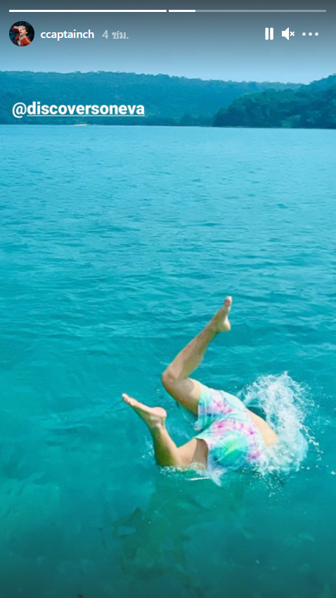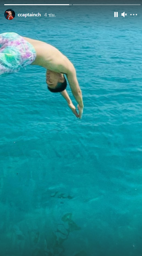 โดยหนุ่มกัปตัน ก็ได้โพสต์ไอจีสตอรี่ เป็นภาพตนเองกำลังกระโดดลงทะเล แบบท่าสวยจนนักกีฬาว่ายน้ำโอลิมปิกยังต้องยกนิ้วให้ ไม่รู้ว่าได้แฟนสาวแชะให้หรือเปล่า ถึงมีความซิทคอมผสมอยู่ด้วย เพราะได้ช็อตขาชี้ฟ้า หัวทิ่มลงน้ำอย่างพอดิบพอดีเลยทีเดียว