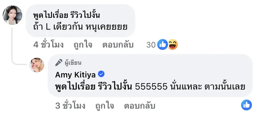 “ซ้อก๊าด” เจ้าของแบรนด์ Love Potion ออกมาแสดงความรับผิดชอบทันควัน โดยคอมเมนต์ขอโทษ Amy อย่างสุภาพ พร้อมชี้แจงว่า