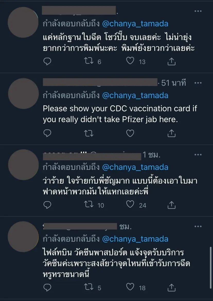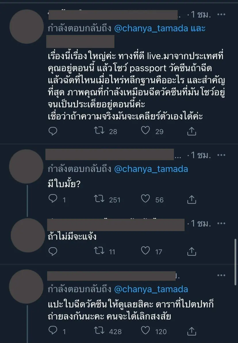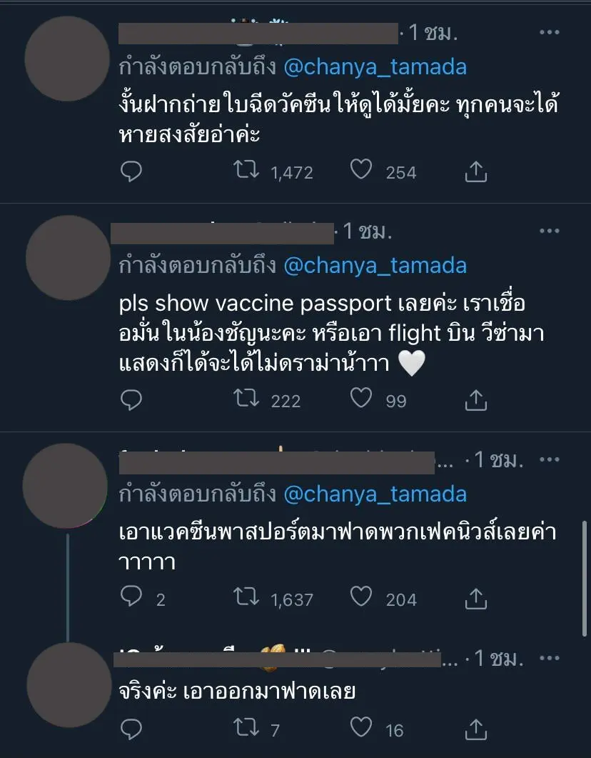 เเต่เพื่อความโปร่งใส ทางด้านของชาวเน็ตก็ได้ถามกลับไปยังฝั่งของ ชัญญ่า ว่า ให้เเสดงหลักฐานการได้รับวัคซีนออกมาจะดีกว่า หรือเเนะนำให้ไลฟ์ไปเลยถ้าเจ้าตัวนั้นอยู่ที่ต่างประเทศจริงๆ