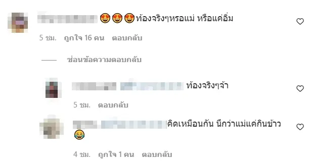 ล่าสุด เจ้าตัวได้มีการอัปเดตภาพผ่านทางอินสตาแกรม เผยท้องโตที่ทำเอาหลายๆคนต่างต้องหยุดชะงัก เพราะ ก่อนหน้านี้ เจ้าตัวไม่เคยเผยท้องแบบชัดๆให้เห็นมาก่อน ทำเอาคนแห่ทักเป็นเสียงเดียวกันว่า ท้องจริงๆหรอแม่ หรือแค่อิ่ม , คิดเหมือนกัน นึกว่าแม่แค่กินข้าว , น้องเริ่มโตแล้วแม่