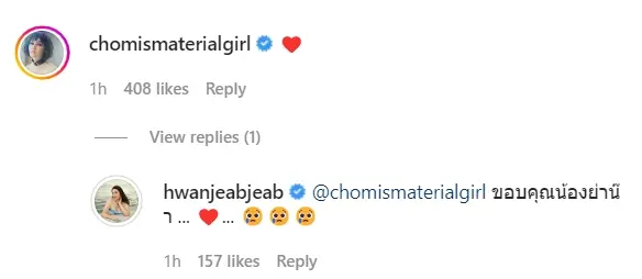 ยินดีกับทุกความสำเร็จของน้อง 2 คนนะคะ พี่จะเปนส่วนเล็กๆของคนเบื้องหลังที่จะอยู่ดูแลและ support น้องเสมอ .. รัก .. ❤️💙 @bbillkin@pp.kritt ซึ่งด้านซุปตาร์สาวอย่าง ชมพู่ อารยา ก็ได้เข้ามาคอมเมนต์ส่งกำลังใจในโพสต์ดังกล่าวเป็นรูปหัวใจ ส่งเข้ามาถึง พีพี และ บิวกิ้น ในครั้งนี้ด้วยเช่นกัน
