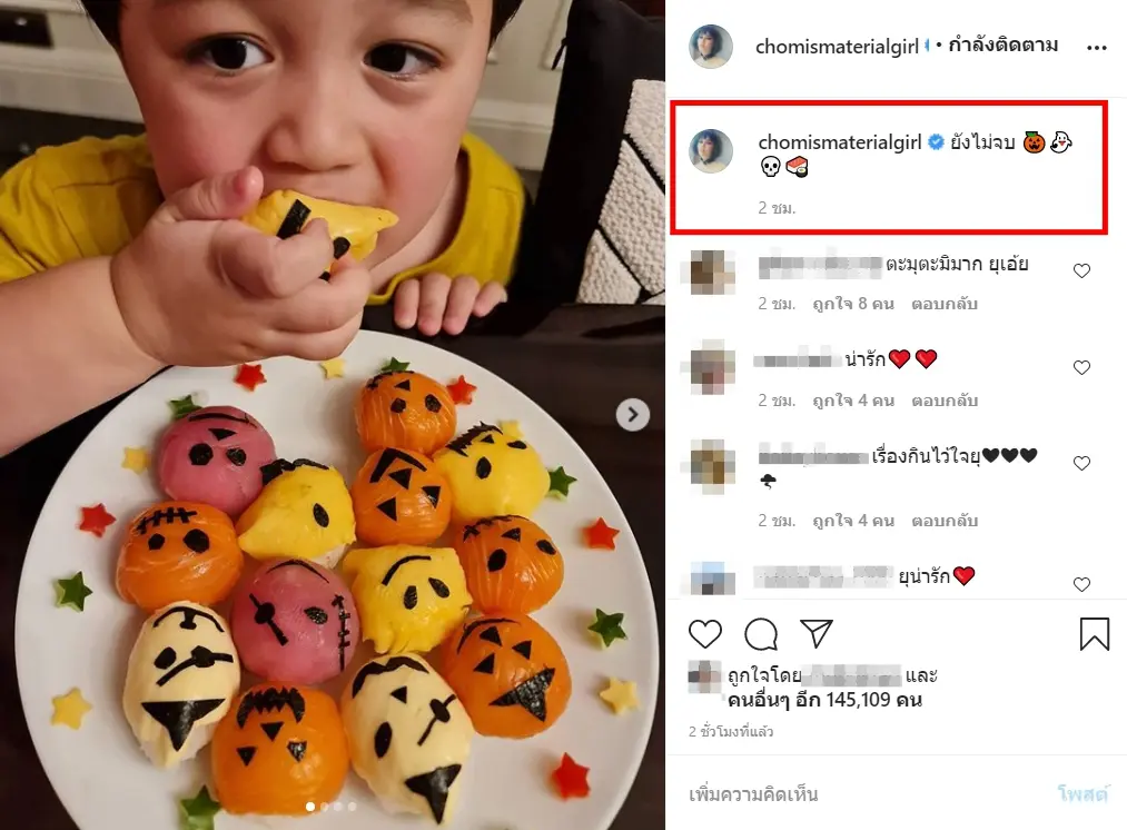 ทำเอาแฟนๆหิวไปตามๆกันสำหรับ น้องพายุ ลูกชายของนักแสดงสาว ชมพู่ อารยา ที่ก่อนหน้านี้ ด้านคุณเเม่ได้ออกมาโพสต์ภาพลูกชายทั้งสองคน สวมใส่ชุดในธีม ฮาโลวีน ซึ่งทั้งน้อง สายฟ้า และ พายุ ก็น่ารักจนแฟนๆหลงกันเลยทีเดียว ล่าสุดจากที่กล่าวไว้ข้างต้น ว่าทำเอาหิ๊วววหิว! นั้นก็คือ ชมพู่ อารยา ได้ออกมาโพสต์ภาพเมนูสุดสร้างสรรค์อย่าง ซูชิหน้าฮาโลวีน ในขณะที่น้องพายุกำลังรับประทานอย่างเอร็ดอร่อยนั้นเอง งานนี้บอกได้เลยว่า เหล่าบรรดาแฟนคลับต่างเข้ามาคอมเมนต์ชมในความน่ารัก แก้มตุ่ยของ พายุ กันอย่างล้มหลามจริงๆค่าาา