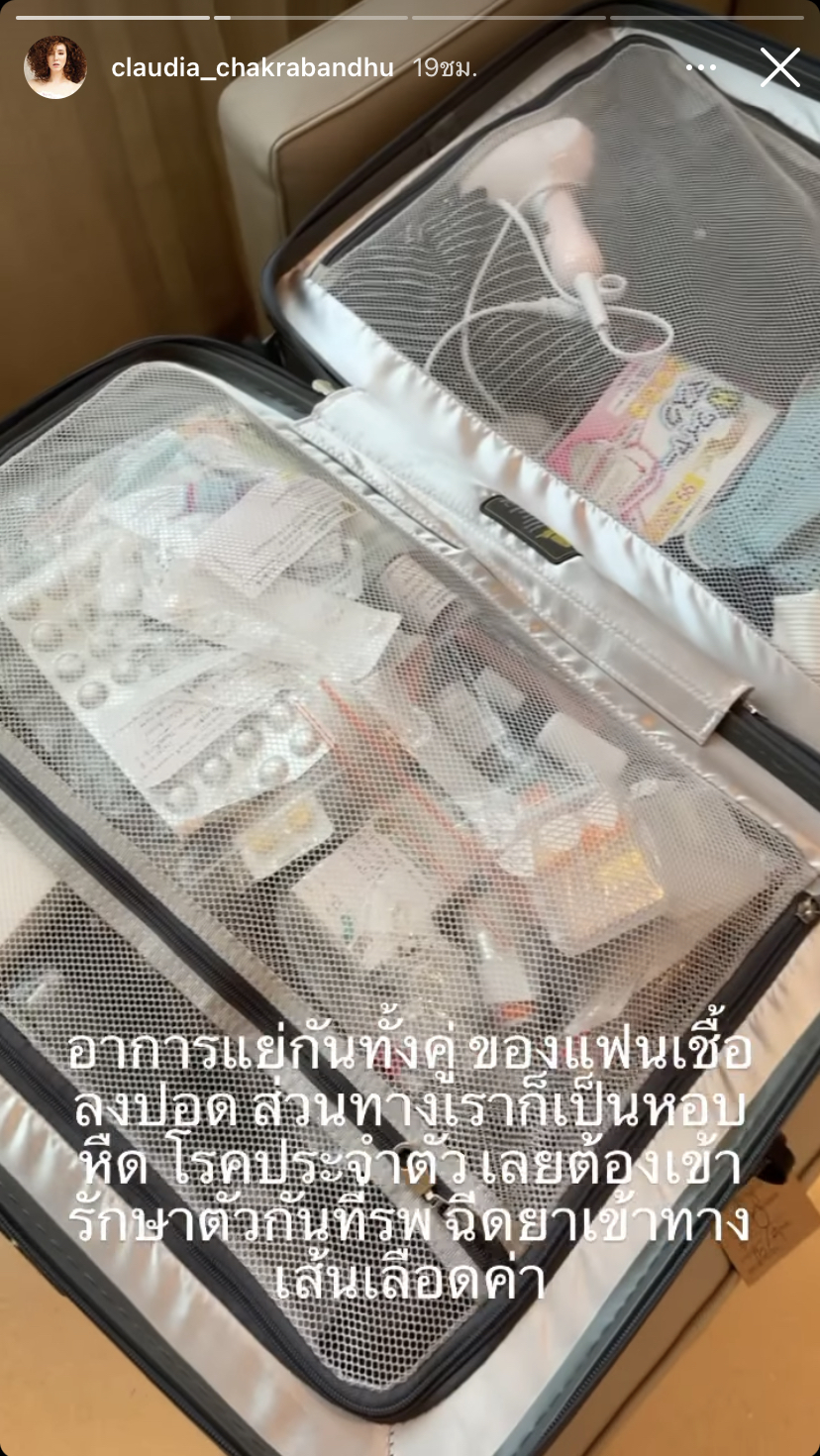 หลังจากที่พบเชื้อและเข้ารับการรักษาตัวแล้วนั้น คลาวเดีย ได้มีการออกมาอัปเดตอาการและการรักษาของตัวเองและแฟนหนุ่มว่า “อาการแย่ทั้งคู่ ของแฟนเชื้อลงปอด ส่วนทางเราก็เป็นหอบหืด โรคประจำตัว เลยต้องเข้ารักษาตัวกันที่โรงพยาบาล ฉีดยาเข้าเส้นเลือด”