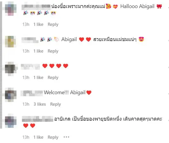 หลังจากที่ น้องอาบิเกล ลืมตาดูโลกได้ไม่นานก็ทำเอาบรรดา คนบันเทิง คนดัง เซเลบ รวมไปถึง บรรดาแฟนคลับต่างเข้ามาร่วมแสดงความยินดีกันอยางคลับคลั่ง และยังมียอดวิวสูงถึง 1 ล้านครั้งภายในไม่กี่ชั่วโมง