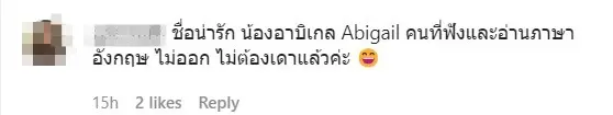 ขณะเดียวกันด้านบรรดาแฟน ๆ ต่างก็ได้ออกมาพูดถึงชื่อลูกสาวของเธอในครั้งนี้ด้วยเช่นกัน หลังจากที่ ชมพู่ และ น็อตได้ออกมาเฉลยชื่อลูกสาวผ่านคลิปวิดีโอดีว่า น้องอาบิเกล ซึ่งทันทีที่แฟน ๆ ได้ทราบชื่อกันต่างเข้ามาคอมเมนต์กันเป็นเสียงเดียวกันว่า น่ารัก และมีความหมายที่ดี อีกทั้งยังชมกับการครีเอตและออกแบบคลิปวิดีโอการเปิดตัวลูกสาวในครั้งนี้อีกเฉกเช่นเดียวกัน