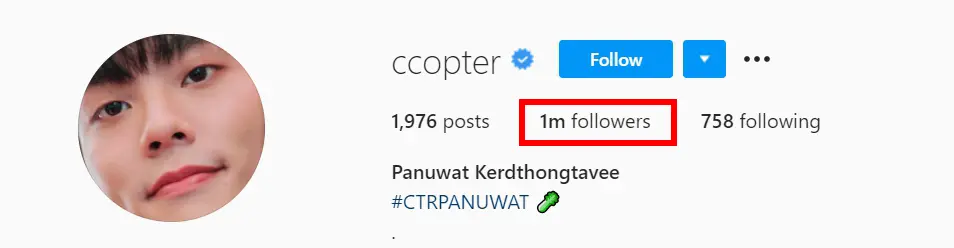 ทำเอาแฟนๆ ของสุดหล่อ คอปเตอร์ SBFIVE หรือ คอปเตอร์ ภานุวัฒน์ ดีใจกันสุดๆ เมื่อในเย็นวันนี้ ยอดฟอลโล่วไอจีของคุณคนเก่ง ทำยอดไปพุ่งทะลุ 1 ล้านฟอลแล้ว งานนี้เหล่าแฟนๆ ทั้งไทย ทั้งอินเตอร์ ต่างก็ยินดีกันสุดๆ รีบมาสร้างแฮชแท็ก #สุดแน่CTRล้านแตก ให้กับน้องคอปเตอร์กันในทันที ซึ่งในตอนนี้ทำติดอันดับ 4 เทรนด์ทวิตเตอร์ไปแล้วเรียบร้อย