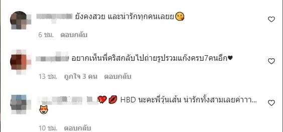โดยในโพสต์ไอจีของ คริส หอวัง ก็ได้มีเข้ามาคอมเมนต์ในมิตรภาพที่น่ารักของเพื่อนๆ กลุ่มนี้ และยังคงรอดูรูปของแก๊งนางฟ้า ที่อยากให้กลับมารวมตัวกันครบ 7 คนอีกครั้งหนึ่ง