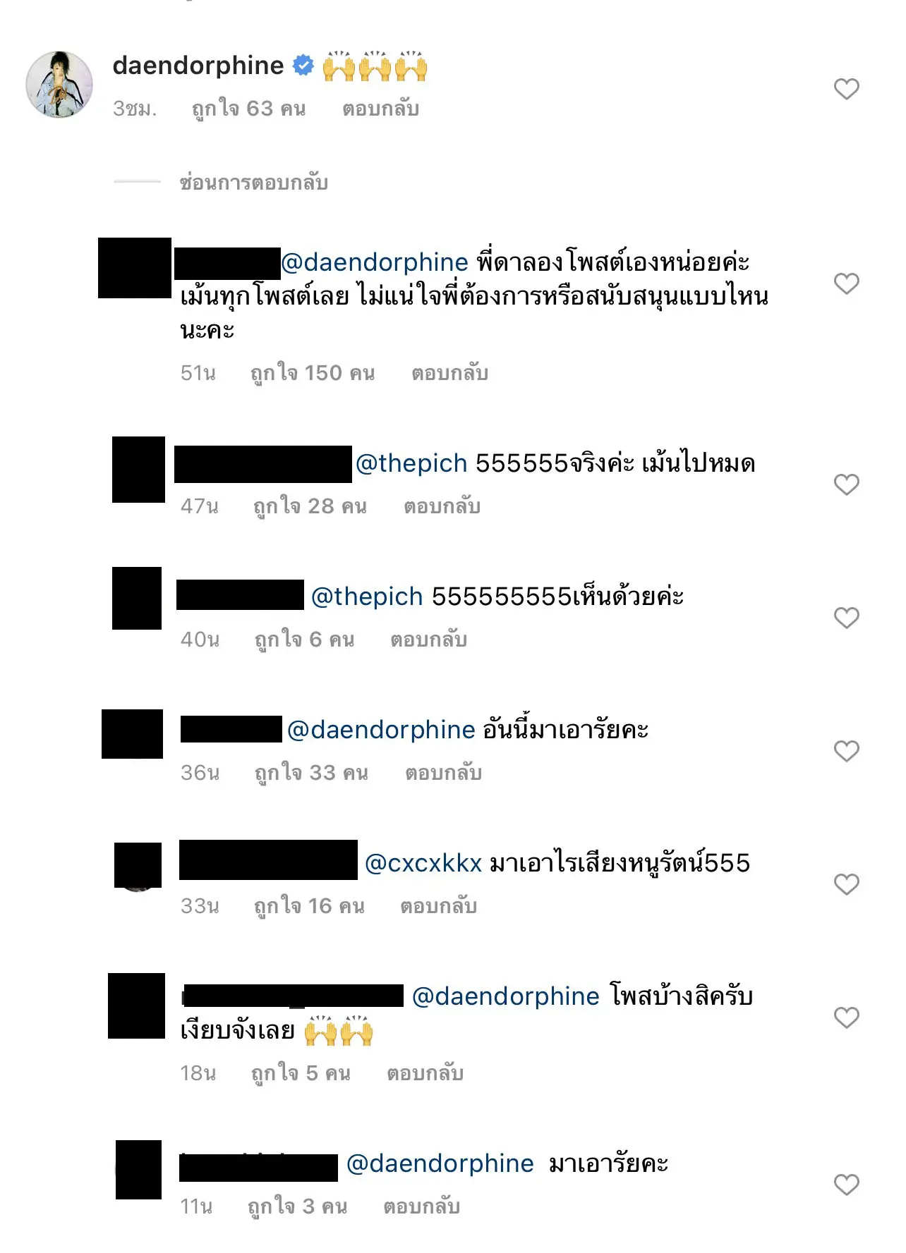 เป็นเรื่องจนได้สำหรับนักร้องสาว ดา เอ็นโดรฟิน ที่เจ้าตัวเข้าไปคอมเมนต์ โพสต์ร่ายยาวของ โทนี่ รากแก่น ซึ่งเป็นเพียงภาพ อิโมจิรูปมือเท่านั้น ชาวเน็ตถาม มาเอาอะไร เห็นด้วย หรือไม่เห็นด้วย อยากให้ลองโพสต์ Call Out ดูบ้างจะได้รู้ว่า มีความคิดเห็นอย่างไร