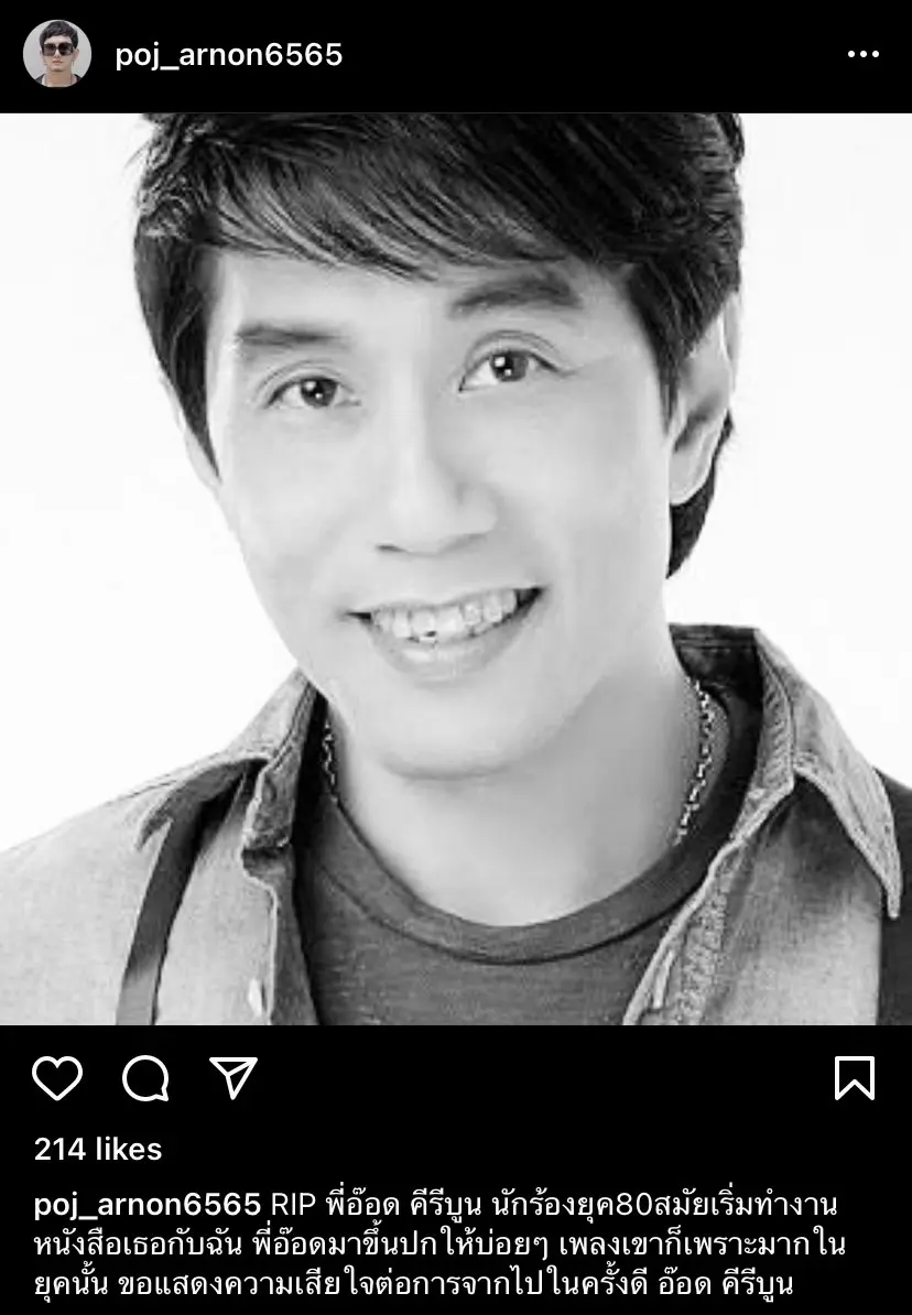 - พชร์ อานนท์ โพสต์ข้อความว่า RIP พี่อ๊อด คีรีบูน นักร้องยุ ค80 สมัยเริ่มทำงานหนังสือเธอกับฉัน พี่อ๊อดมาขึ้นปกให้บ่อยๆ เพลงเขาก็เพราะมากในยุคนั้น ขอแสดงความเสียใจต่อการจากไปในครั้งดี อ๊อด คีรีบูน