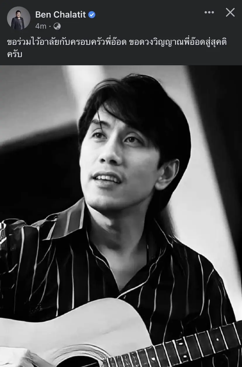 - เบน ชลาทิศ โพสต์ข้อความว่า ขอร่วมไว้อาลัยกับครอบครัวพี่อ๊อด ขอดวงวิญญาณพี่อ๊อดสู่สุขคติครับ