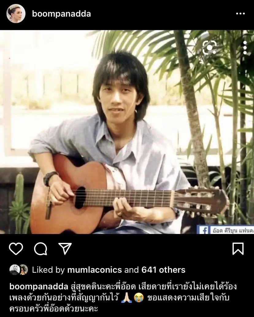 - บุ๋ม ปนัดดา โพสต์ข้อความว่า สู่สุขคตินะคะพี่อ๊อด เสียดายที่เรายังไม่เคยได้ร้องเพลงด้วยกันอย่างที่สัญญากันไว้ 🙏🏻😭 ขอแสดงความเสียใจกับครอบครัวพี่อ๊อดด้วยนะคะ