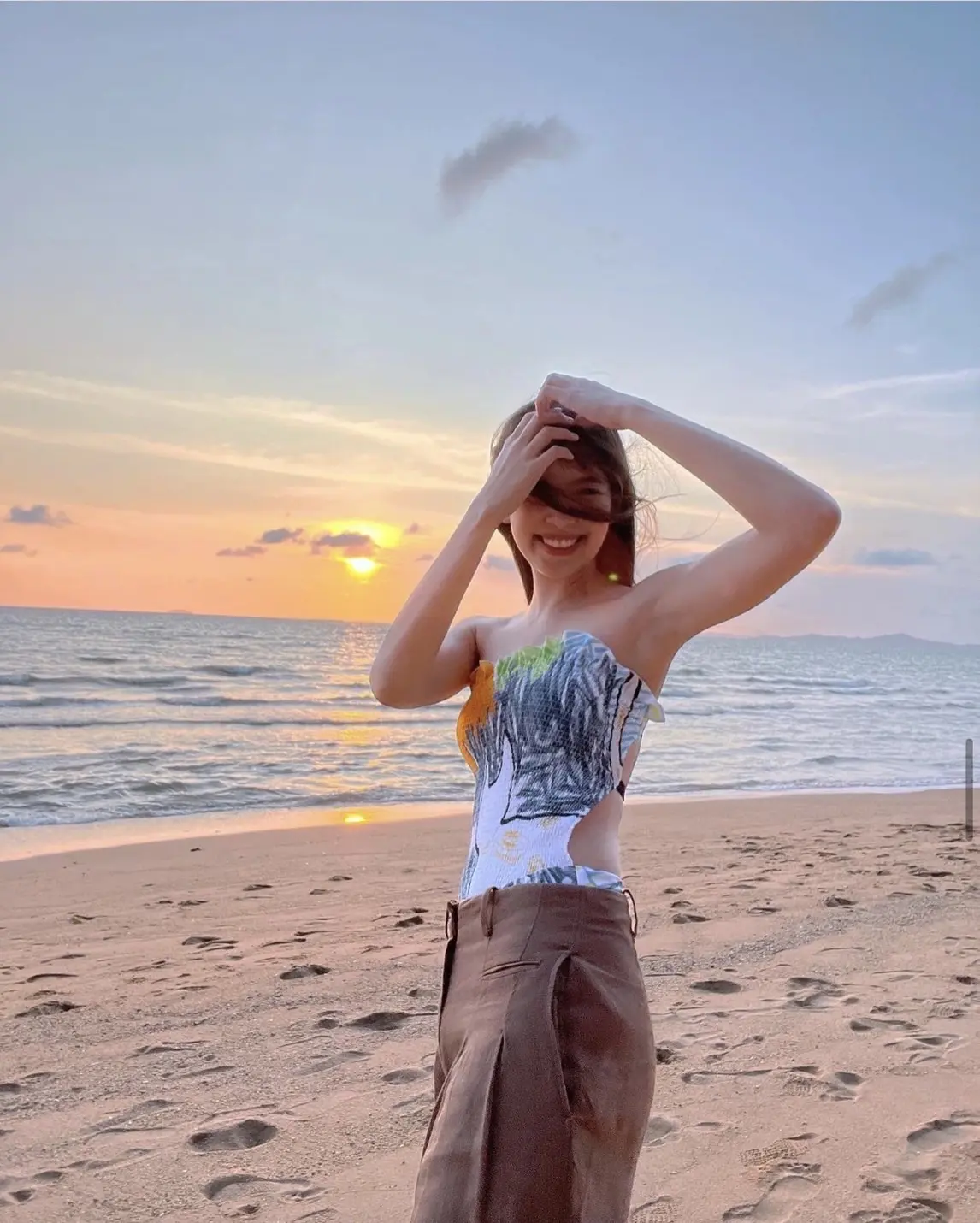 เช่นเดียวกับนางเอกสาว ต้าเหนิง กัญญาวีร์ สองเมืองที่มาพักผ่อนริมทะเลโดยนำชุดว่ายน้ำวันพีช เกาะอกสีส้ม แมตช์กับกางเกงขาบานทรงโอเวอร์ไซส์ ซึ่งหากนำเสื้อสูทมาใส่ก็จะได้ลุคสมาร์ทสำหรับไปทำงานได้เลย