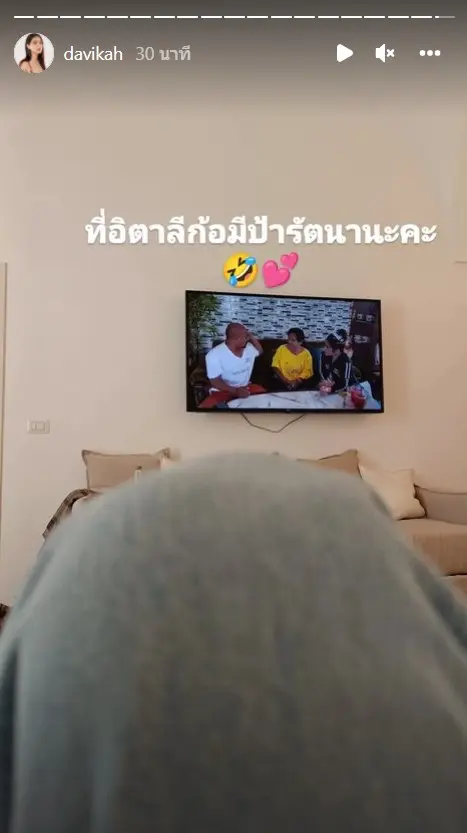 แต่ยิ่งไปกว่านั้นล่าสุด ใหม่ ดาวิกา ได้ลงไอจีสตอรี่ ซึ่งเป็นภาพที่เธอกำลังดูทีวี แต่ในทีวีนั้นปรากฎว่าเป็นภาพของ ป้ารัตนา และ หมอปลา งานนี้เจ้าตัวมาพร้อมแคปชั่นว่า ที่อิตาลีก้อมีป้ารัตนานะคะ แหม๋…งานนี้ดังไม่ใช่น้อย โกอินเตอร์สู่ อิตาลีแล้วจ้าป้า