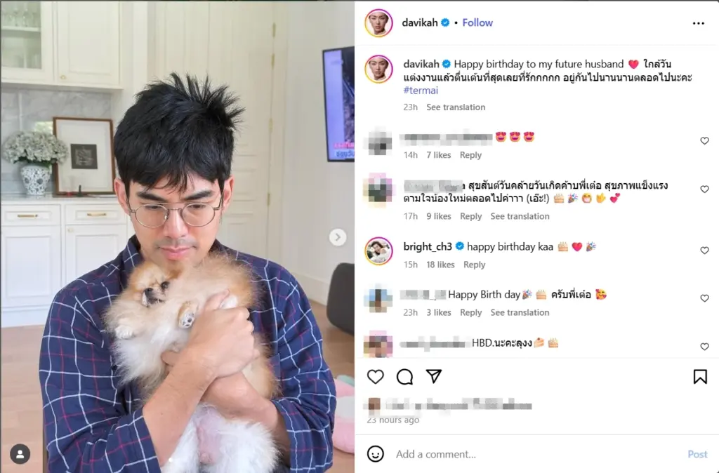 “Happy birthday to my future husband ใกล้วันแต่งงานแล้วตื่นเต้นที่สุดเลยที่รักกกกก อยู่กันไปนานนานตลอดไปนะคะ #termai”