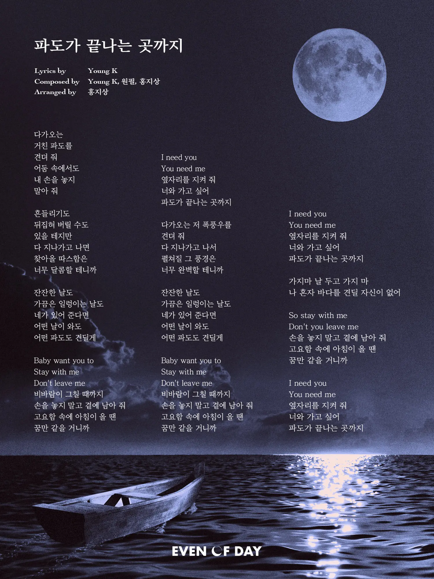 Even of Day เป็นยูนิตย่อยใหม่จาก DAY6 วงดนตรีสัญชาติเกาหลีใต้ ภายใต้สังกัดค่าย JYP Entertainment มีสมาชิก 5 คน ได้แก่ ซองจิน เจ (Jae) ยองเค (Young K) วอนพิล และโดอุน ซึ่งสมาชิกของยูนิตย่อยนี้ประกอบไปด้วย ยองเค (Young K) วอนพิล และ โดอุน