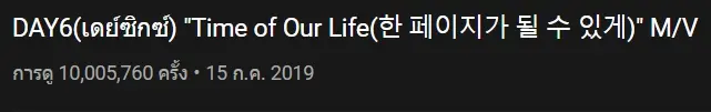 ข่าวดีของวันกับหนุ่มๆ DAY6 ที่ในวันนี้ (12 ธ.ค. 63) มิวสิควิดีโอเพลงฮิตสุดโด่งดังอย่าง Time of Our Life มียอดวิวสูงถึง 10 ล้านวิวแล้ว
