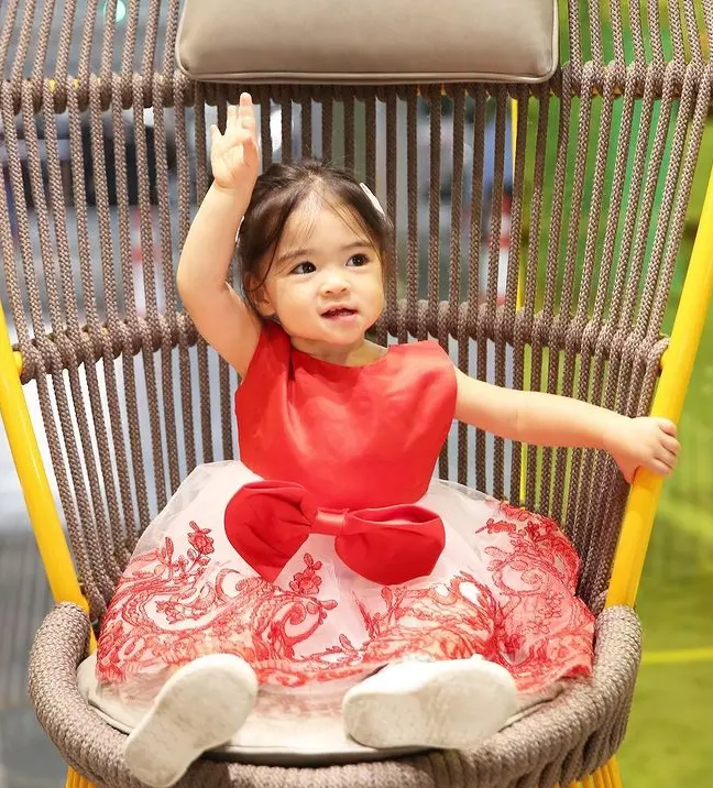 แป๋วแหว๋วขอแกว่ง! น้องเดมี่ ผูกโบว์แดงเล่นชิงช้าสุดน่ารัก ยิ้มทีใจละลายแล้วลูก