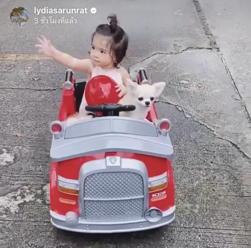 ล่าสุด ลีเดีย ได้โพสต์คลิปผ่านอินสตาแกรม ซึ่งเป็นคลิปที่น้องเดมี่กำลังอยู่บนรถของเล่นเด็ก พร้อมน้องหมาตัวน้อยสุดน่ารักที่นั่งอยู่บนรถด้วย แถมยังมีการโบกมือทักทายคนรอบข้างอีกต่างหาก บอกเลยน่ารักไม่ไหว