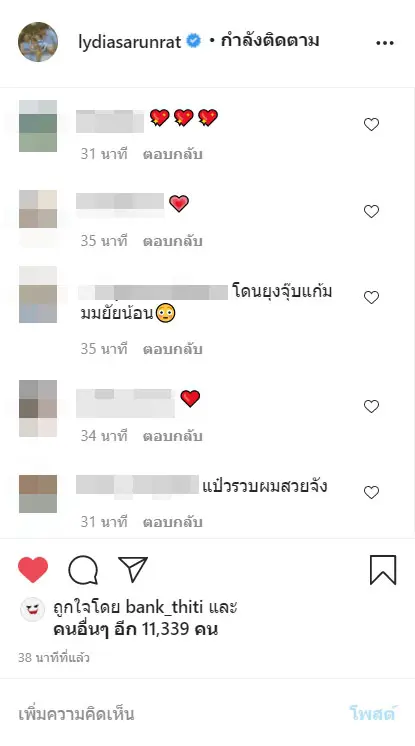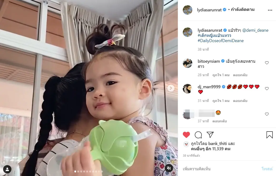 แต่คราวนี้ก็ทำแฟนคลับเป็นห่วง หลังจากที่สาวลิเดียได้โพสต์รูปน้องเดมี่แบบชุดใหญ่จัดเต็ม แฟนคลับก็ได้สังเกตเห็นรอยยุงกัดที่ข้างแก้มน้อง และพากันคอมเมนต์แสดงความเป็นห่วงว่า ‘ยุงใจร้าย….กัดแก้มแป๋วได้ลงคอ?’ ‘แป๋วแหวว แก้มหนูถูกยุงกัดรึเปล่าคะ ระวังเป็นไข้นะคะ รักแป๋วนะ ??’ ‘แก้มโดนอารัยมาคะนั้น’ หรือ ‘ยุงกัด ยังไง ก็ยังน่ารัก ??’ ‘โดนยุงจุ๊บแก้มมมยัยน้อน?’