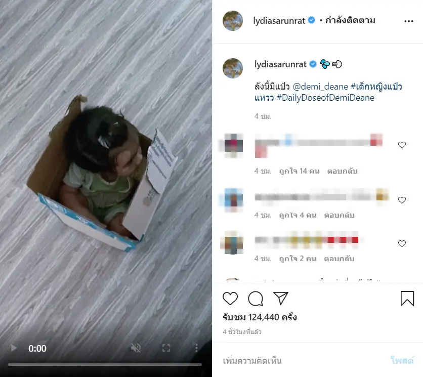 นอกจากนี้ ในแอคอินสตาแกรมส่วนตัวของสาวลิเดียคนสวยเอง ก็ได้ลงคลิปที่ได้จับน้องเดมี่ใส่กล่อง ซึ่งแม้กล่องจะเล็ก แต่เต็มไปด้วยความน่ารักคุณภาพคับกล่องจริงๆ ใครบ้างจะทำใจไม่อมยิ้มให้กับความน่ารักของโลกใบนี้อย่างน้องเดมี่ได้กันล่ะ จริงไหม???
