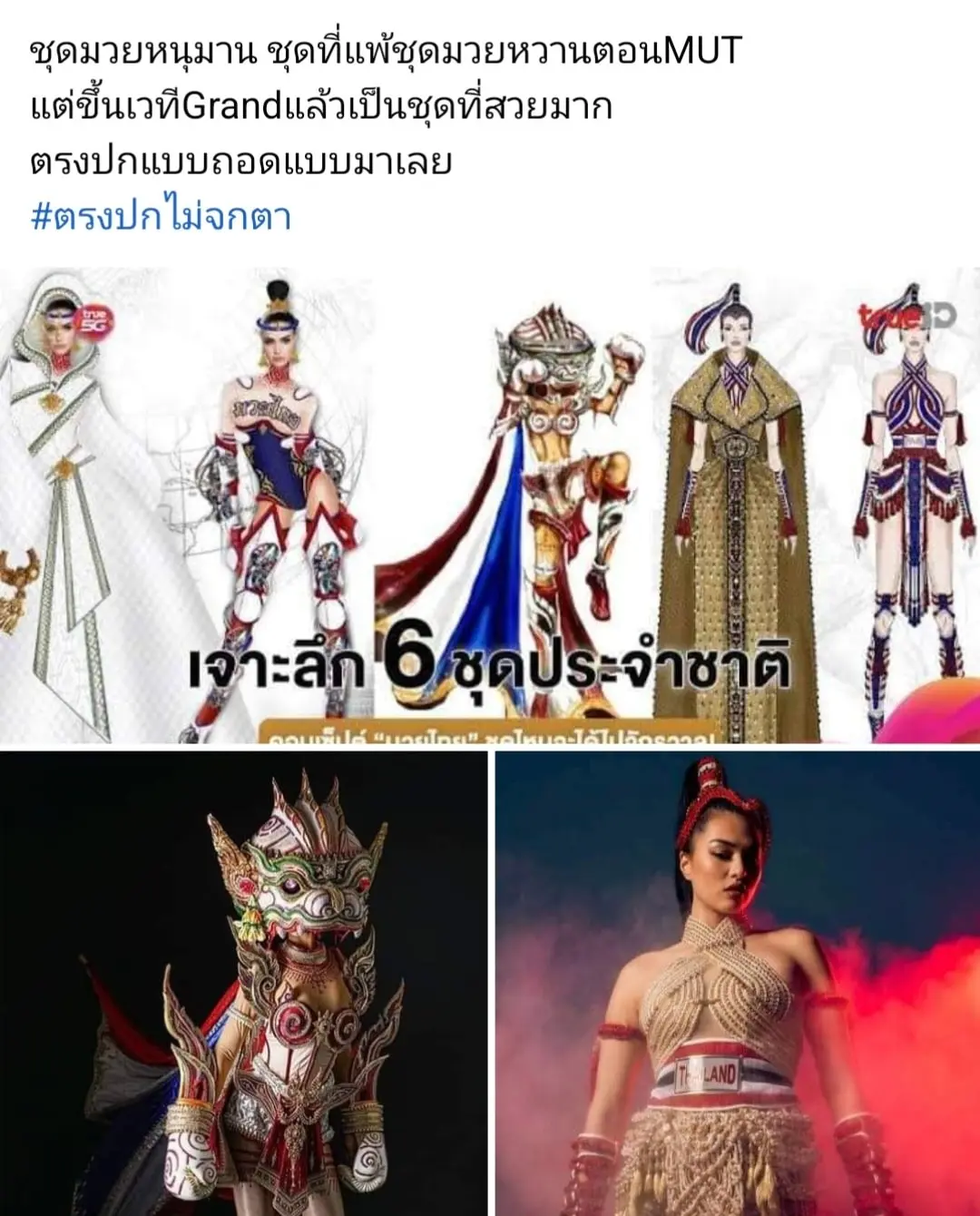 ที่เคยเข้ารอบการประกวดของ Miss Universe Thailand 2021 ทำไมถึงทำชุดมาประกวดเวที Miss Grand Thailand ได้ เหตุผลเนื่องจากมีผู้ใหญ่ใจดีท่านหนึ่ง ท่านได้ขอสนับสนุนผลงานชิ้นนี้ (ตอนนั้นเป็นแค่แบบสเก็ตช์) ให้ไปต่อยอดในการประกวด ซึ่งในหัวผมนึกออกแค่ที่เดียวคือเวทีแกรนด์ แล้วคอนเซ็ปต์ที่ผมออกแบบมันคือ มวยลิง จาก จ.ลพบุรี ผมเลยทักไปขอเป็นผู้สนับสนุนให้กับทางจังหวัด โดยมีพี่ทวนเป็น PD ทุกอย่างเลยออกมาตามที่เห็นครับ