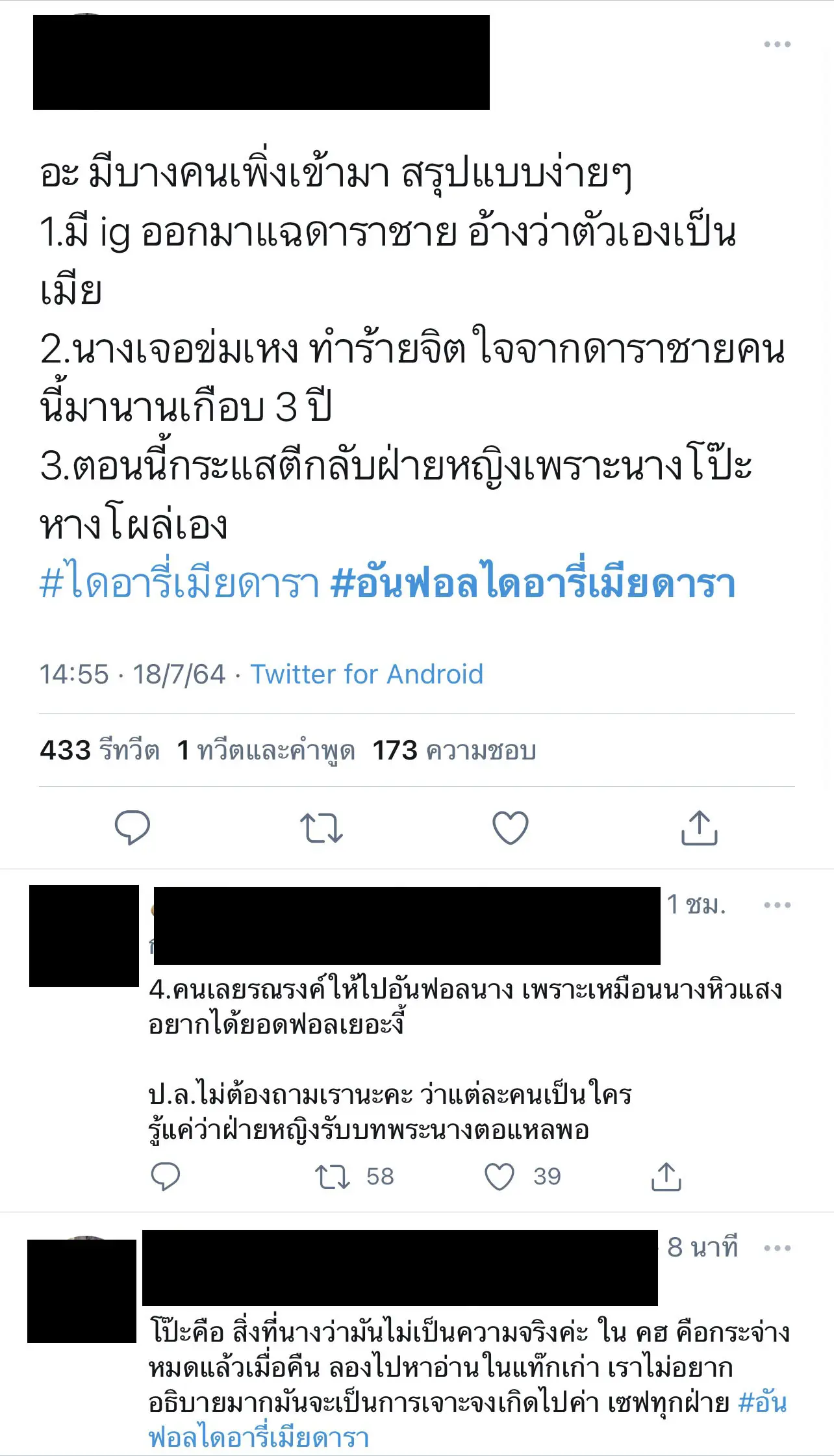 ก่อนหน้านี้ไม่กี่วันเกิดกระแสสังคม #ไดอารี่เมียดารา ยอดฟอลแอคเคาท์ดังกล่าวเพิ่มขึ้นจำนวนมาก ล่าสุดคดีพลิก #อันฟอลไดอารี่เมียดารา