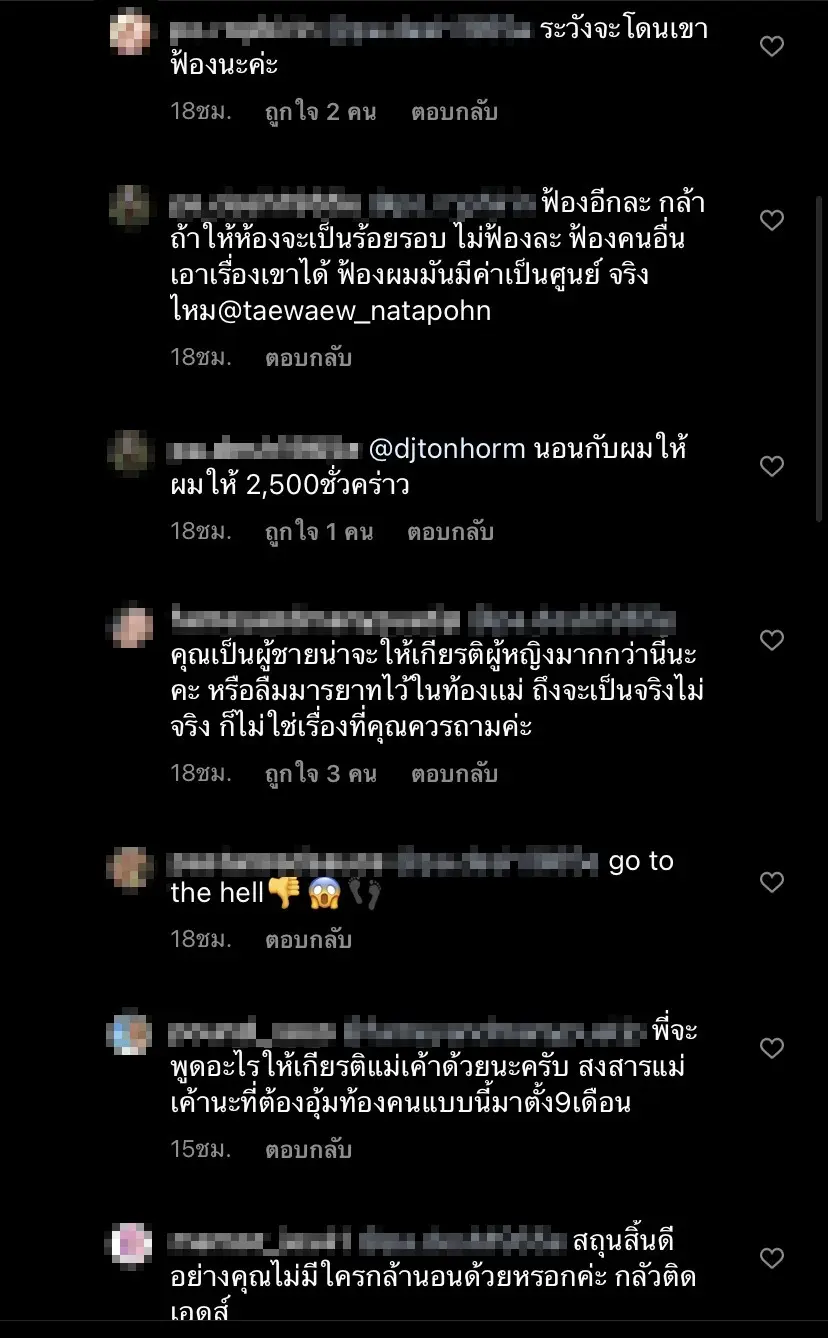 งานนี้ทำเอาชาวเน็ตคนอื่นๆต่างเข้ามาคอมเมนต์ปกป้อง ดีเจต้นหอม กันอย่างมากมาย จนกลายเป็นที่ถกเถียงกันกลางอินสตาแกรมของสาวแต้ว ทั้งนี้ชาวเน็ตที่เข้ามาปกป้อง ดีเจต้นหอม ยังมีการขู่ เกรียนคีย์บอร์ด ให้ระวังจะโดนฟ้องด้วยเช่นกัน