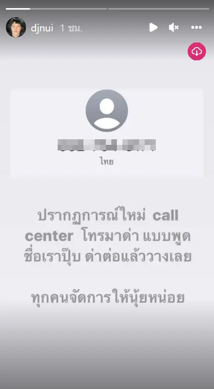 ดีเจนุ้ย งานเข้าแบบเต็ม ๆ หลังโดนแก๊งคอลเซ็นเตอร์โทรหาพร้อมติดเครื่องด่ามาด้วยก่อนที่จะวางสายใส่ เจ้าตัวโพสต์ลงสตอรี่ไอจี