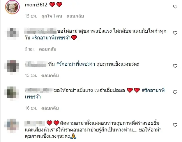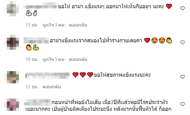 งานนี้ก็มีทางด้านของแฟนคลับเข้ามาร่วมคอมเมนต์อวยพรให้กลับทางด้านของ อาม่า กันอย่างมากมายรวมถึงทางด้านของคุณแม่ของ นิวเคลียร์ หรรษา ก็เข้ามาร่วมสติกเกอร์หัวใจให้กับทางอาม่าด้วยเช่น