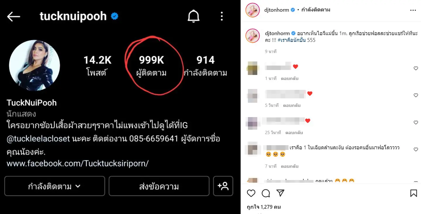 ตั๊ก ศิริพร ตื่นมาพร้อมกับความลุ้นหลังอินสตราแกรมส่วนตัวคนกดฟอลโล่เลขสวย 999K งานนี้ลุ้น 1ล้านแตกๆ ด้านดีเจต้นหอมช่วยปั่น