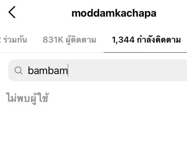 หลังจากที่มีกระแสดราม่าโจมตี มดดำ แบบไม่หยุด ไม่ว่าจะคำวิจารณ์ต่างๆของแฟนคลับไทยและต่างประเทศในทวิตเตอร์และในไอจีของมดดำ ล่าสุดวันนี้ มดดำ ได้ทำการ อันฟอลโลว์ หรือ กดเลิกติดตาม แบมแบม ใน Instagram เป็นที่เรียบร้อยแล้ว อย่างไรก็ตาม ต้องรอติดตามการเคลื่อนไหว และคำแถลงการณ์ของมดดำผ่านรายการแฉ ในวันพรุ่งนี้กันต่อไป
