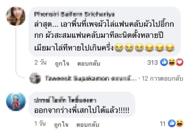 - เอาพื้นที่เพจผัวไล่แฟนคลับผัวไปอีก ผัวสะสมแฟนคลับมาทีละนิดตั้งหลายปี เมียมาไล่ทีหายไปเกินครึ่ง