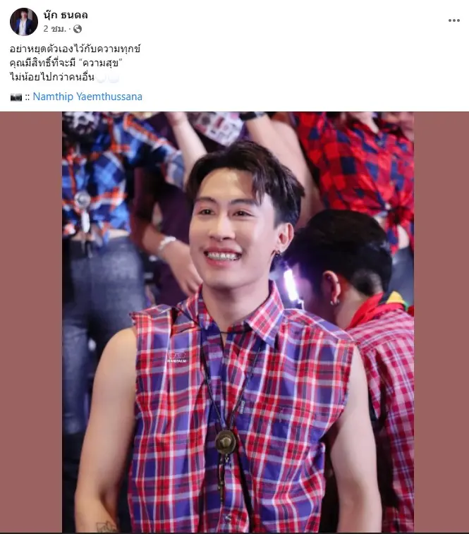 นุ๊ก ธนดล ขอมูฟออนดราม่าลดสถานะคู่จิ้น ล่าสุดออกมาเคลื่อนไหวบนเฟซบุ๊ก ลั่นอย่าหยุดตัวเองไว้กัลความทุกข์