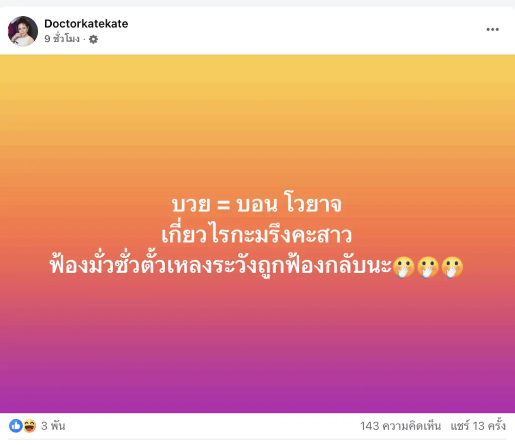 นอกจากนี้ หมอของขวัญยังได้โพสต์ข้อความแซ่บ ๆ สะเทือนโลกออนไลน์ว่า: